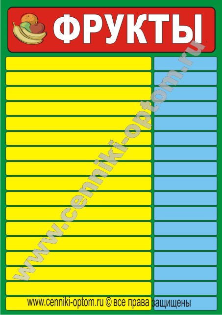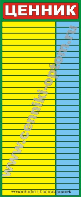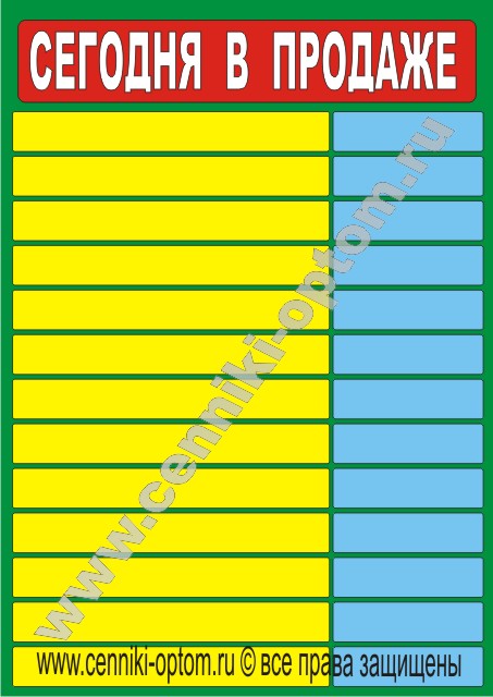 Ценники информационные (ламинированные) имеют различные размеры: А4 (стандартный лист); 2А4; А3 и 2А3.
